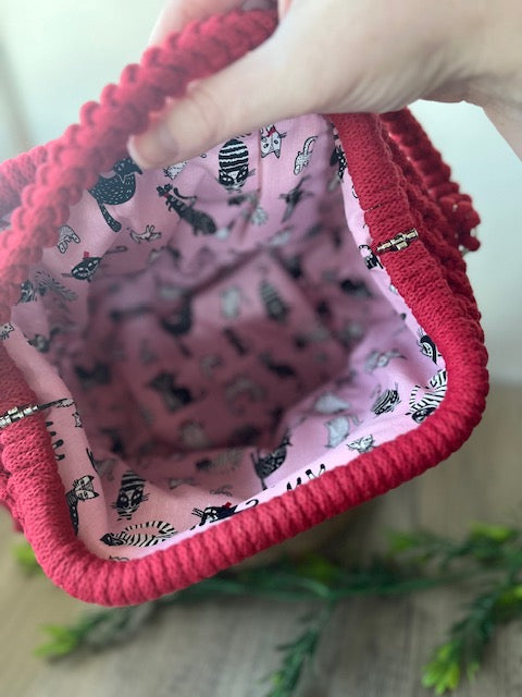Material: Body of bag is made from regenerated cotton macrame braided rope – manufactured in Melbourne. Lining can be made from cotton or a cotton blend.