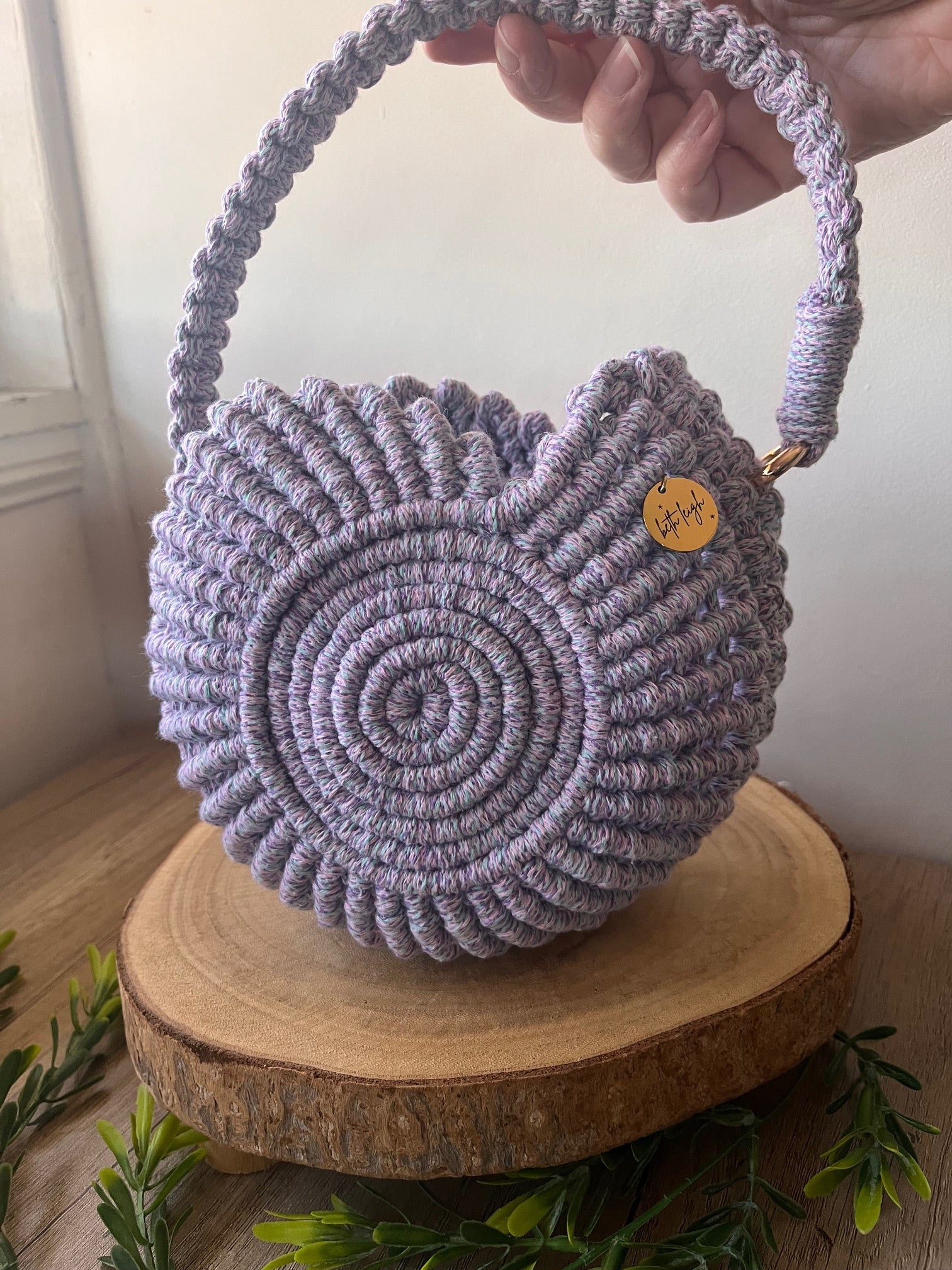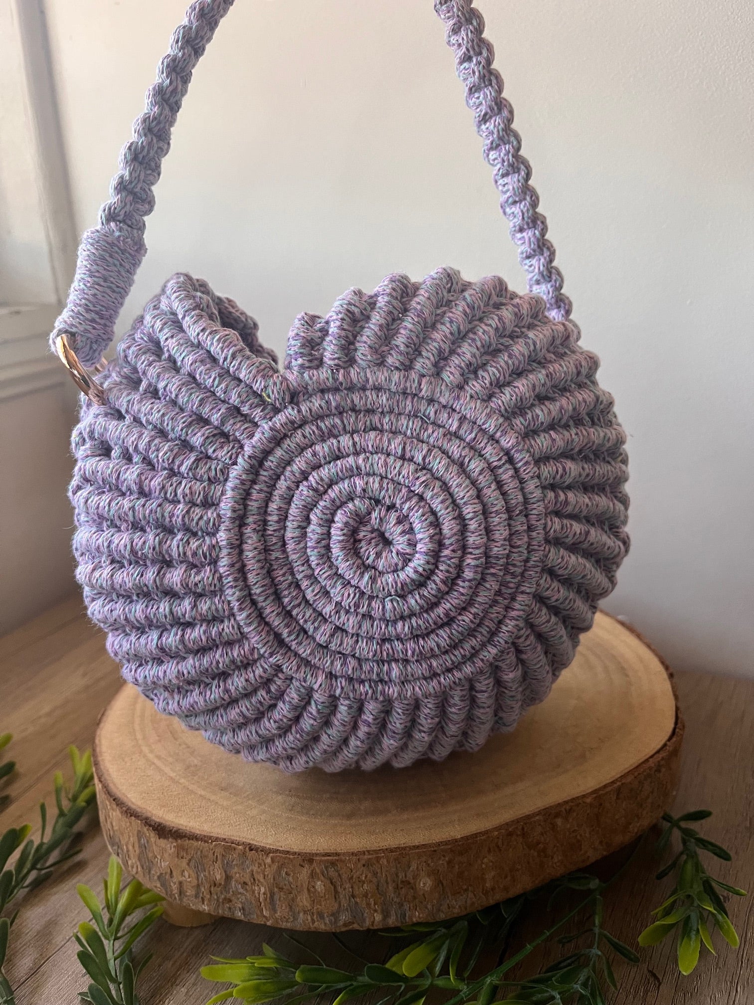 A sculptured piece of wearable art! This handwoven macrame purse is designed in the graceful silhouette of a seashell, evoking the elegance of the ocean with a modern, refined touch.