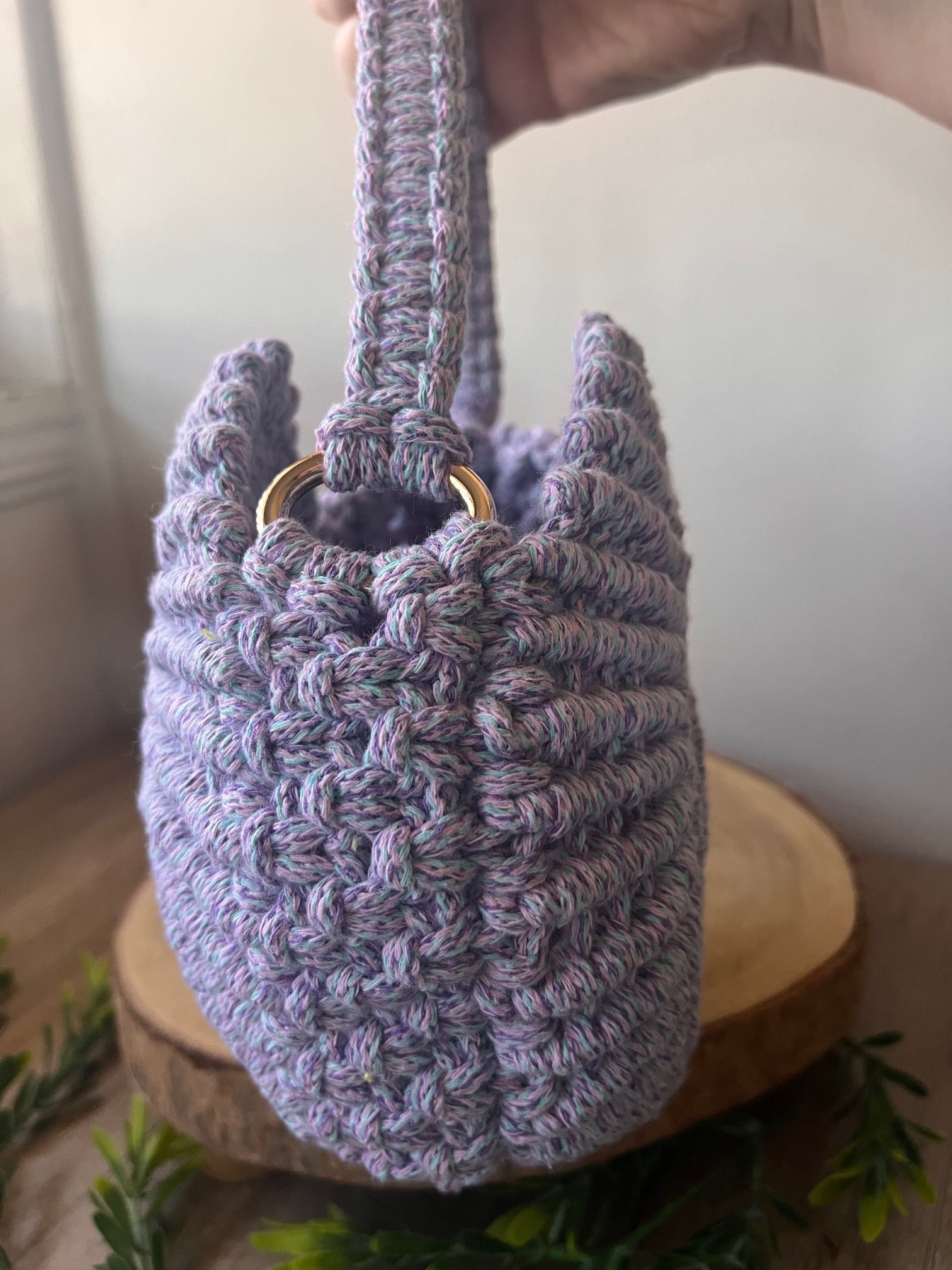 Material: Body of purse is made from regenerated cotton macrame braided rope – manufactured in Melbourne. The inside finish of this design is professional and clean; no lining is required. Gold look hardware.