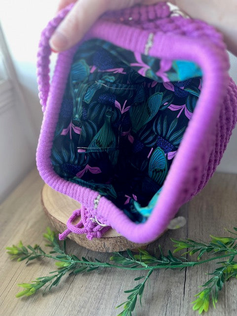 Material: Body of bag is made from regenerated cotton macrame braided rope – manufactured in Melbourne. Lining can be made from cotton or a cotton blend.